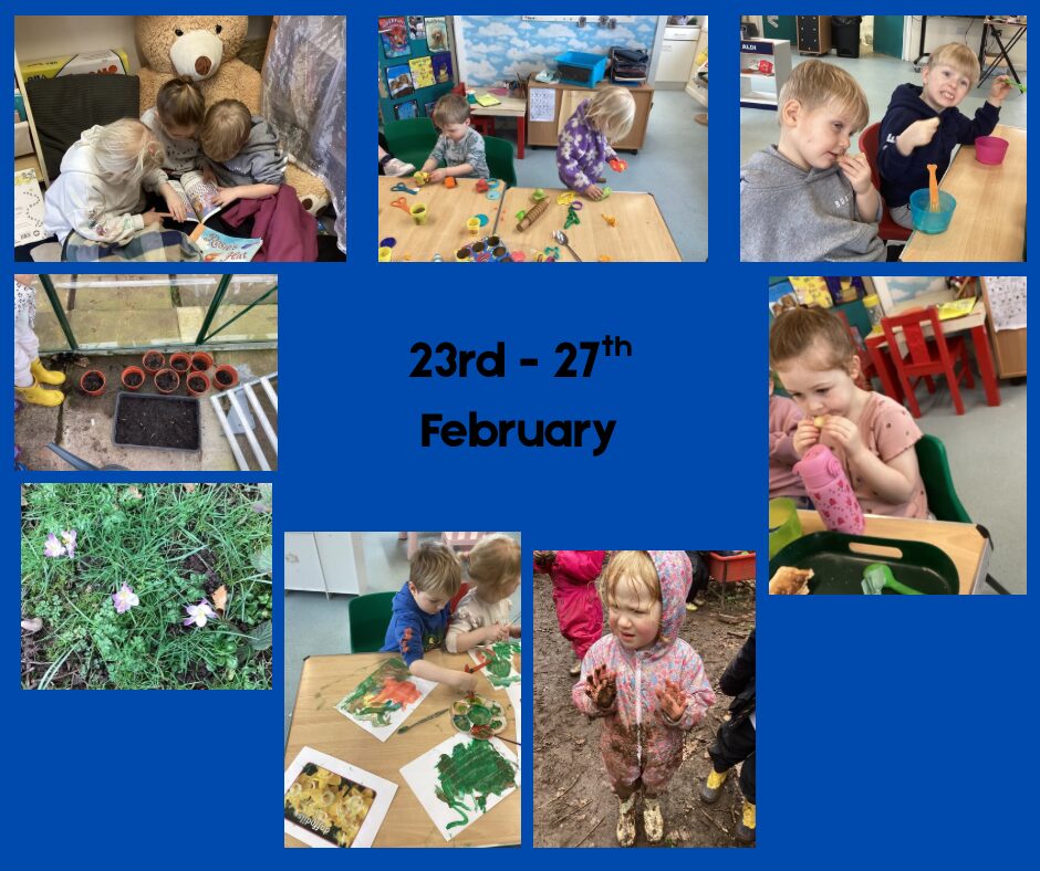 *On Monday our focus story was ‘We’re Going on a Bear Hunt’. We had fun in the messy tuff tray, made a Bear Hunt map using the story, did some Bear Hunt yoga and went on an outdoor bear hunt of our own!