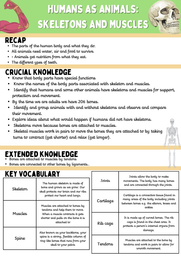 Summer 1- Humans as animals- Skeletons and muscles